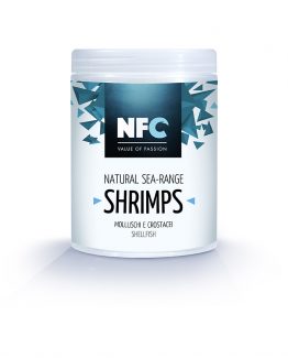 La linea sea-range si compone di prodotti derivati dall’acquacoltura marina, come gamberetti e gusci d’ostrica tritati.
